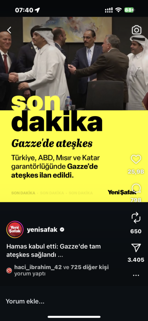 [4] Reuters – Tepkiler derlemesi: “Leaders react to agreement on first phase of Trump’s Gaza deal.”